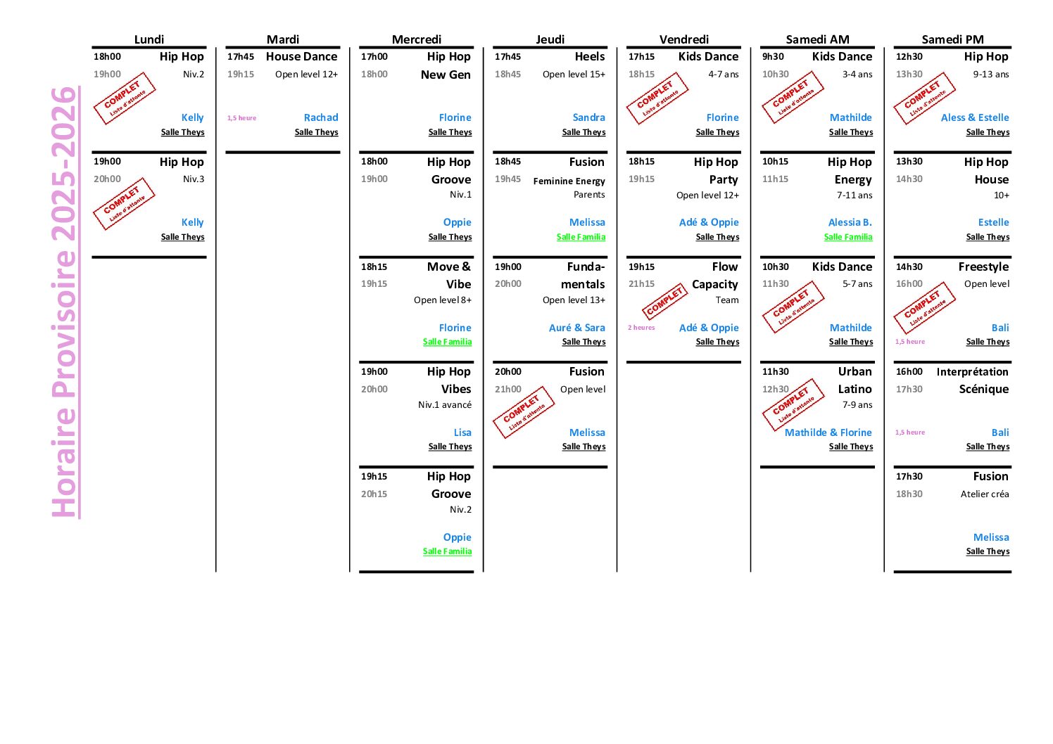 ⬇️ Horaire provisoire applicable à partir du lundi 8 septembre 2025.